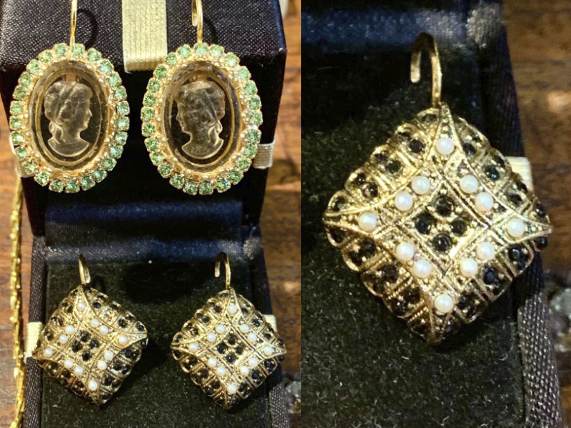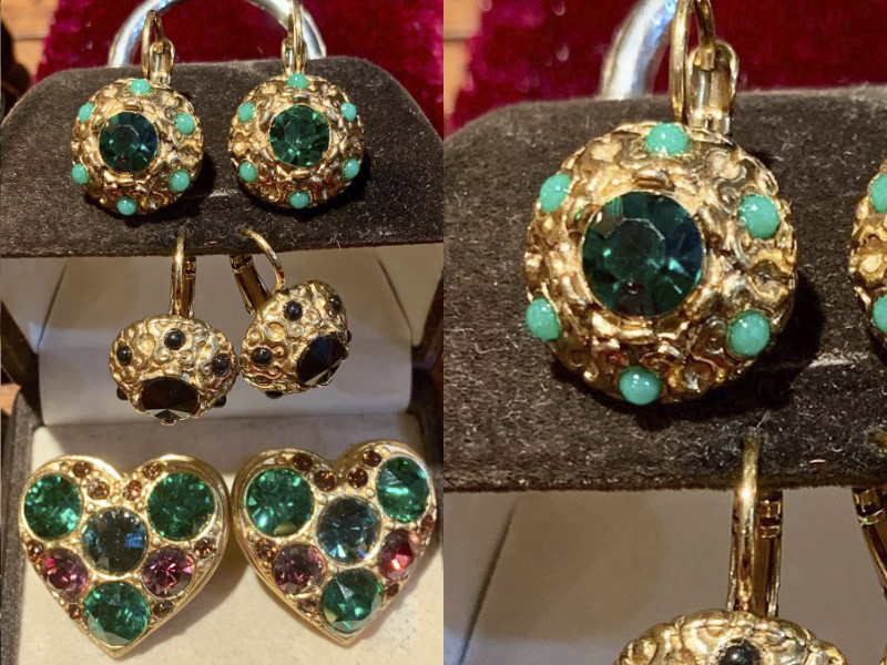 Das Gros der Ohrringe und Broschen wird in Handarbeit in Bayern hergestellt. Bei den verwendeten Steinen handelt es sich um Swarovski-Kristalle. Viele der Modelle sind originalgetreue Nacharbeiten aus den 50er und 60er Jahren, mit heutigen Materialien hergestellt, also nickelfrei.