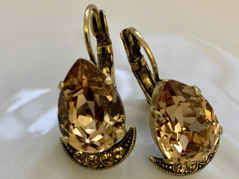 Das Gros der Ohrringe und Broschen wird in Handarbeit in Bayern hergestellt. Bei den verwendeten Steinen handelt es sich um Swarovski-Kristalle. Viele der Modelle sind originalgetreue Nacharbeiten aus den 50er und 60er Jahren, mit heutigen Materialien hergestellt, also nickelfrei.